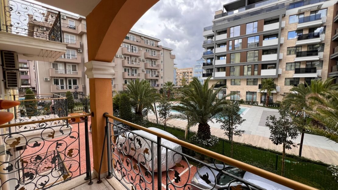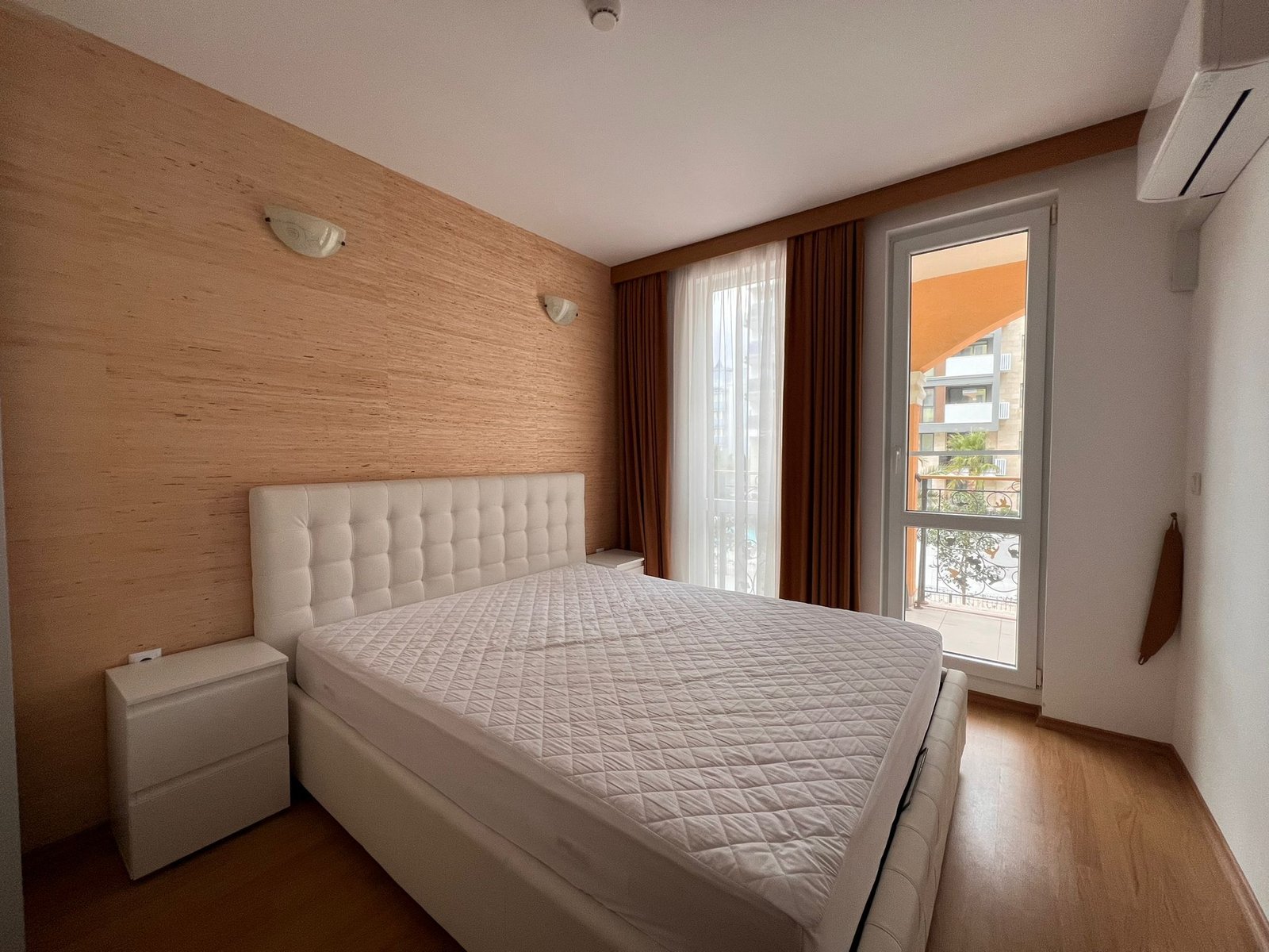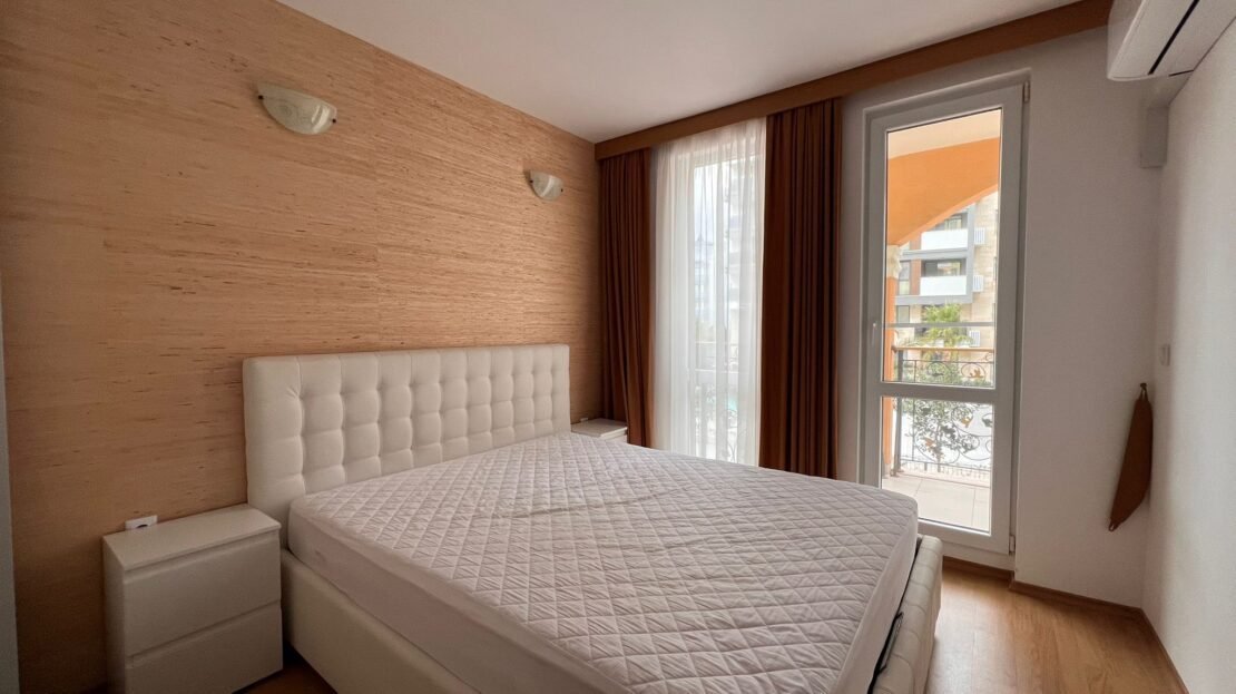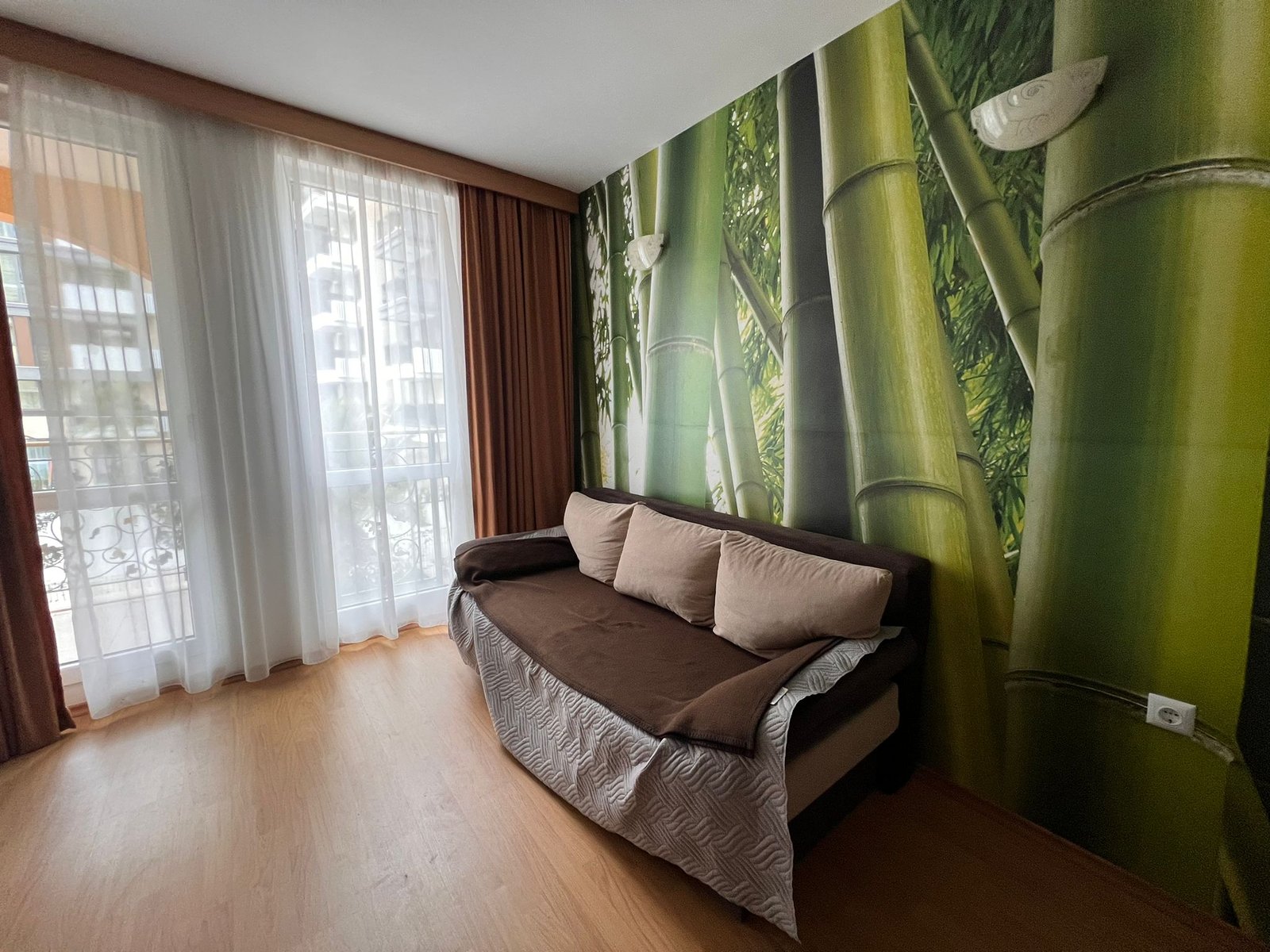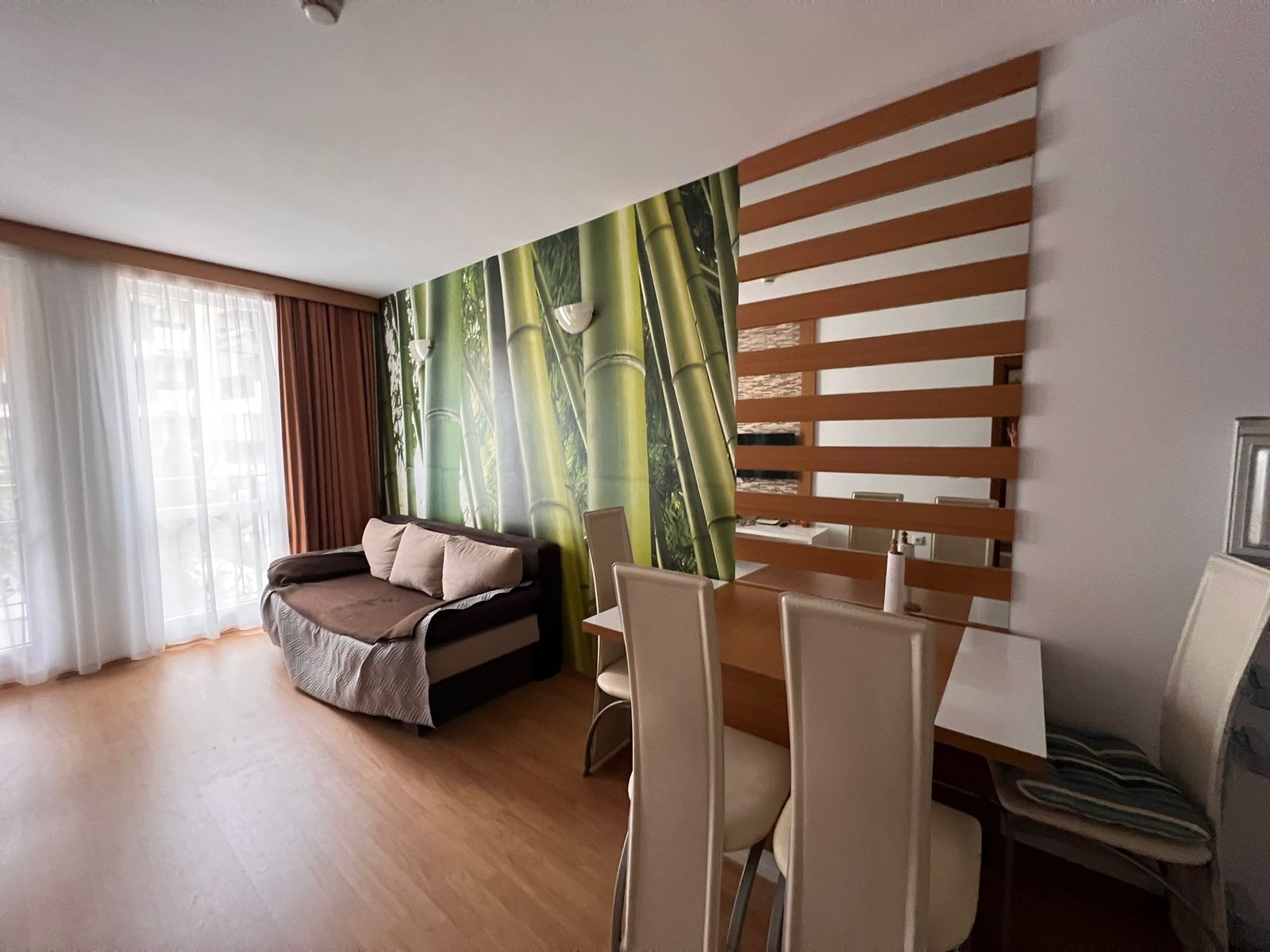 We offer for sale a 1-bedroom apartment in the Suite Hom-1 complex. It consists of a living room with a kitchen area, a bedroom, a bathroom, a large terrace. Sold with furniture and appliances. Ideal for both renting and year-round living. The gated complex Svit Homs 1 is located in the very center of Sunny Beach in a cozy area. Nearby there are restaurants, shops, banks open all year round, which is convenient for permanent residence. In the center of the territory of Svit Homs 1 there is a large swimming pool with a children’s section, a playground, green alleys for walking, a SPA center with a Jacuzzi and sauna, a gym, Parking. The building was put into operation – act 16.