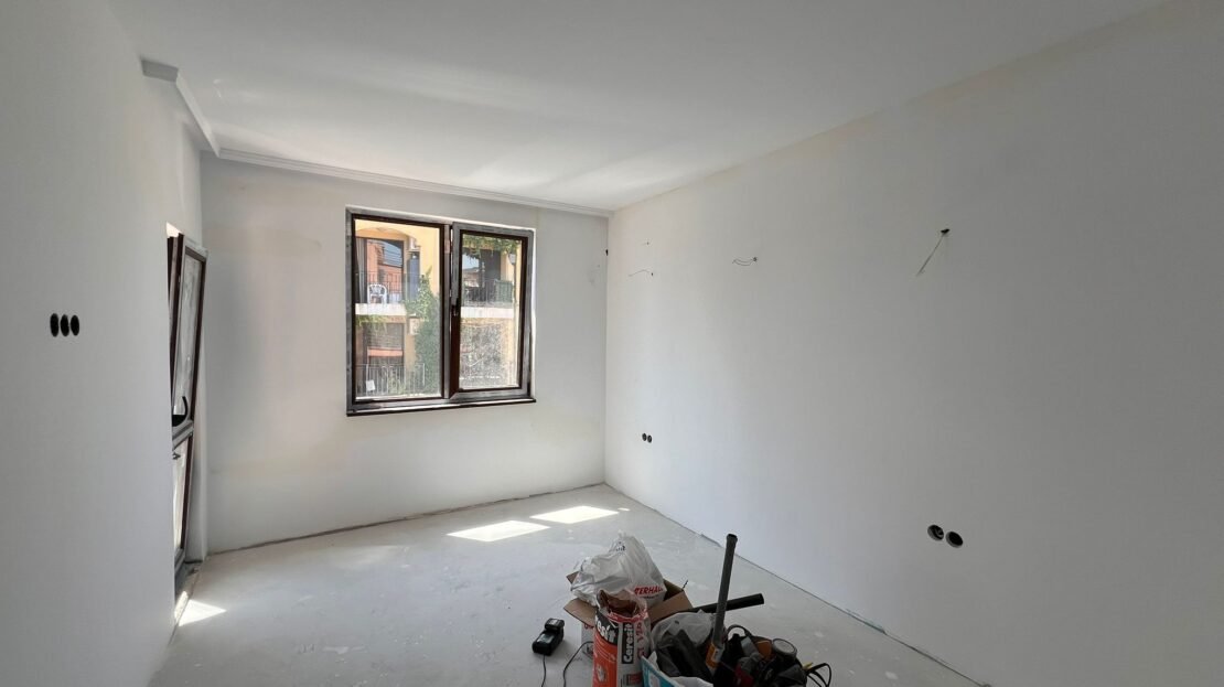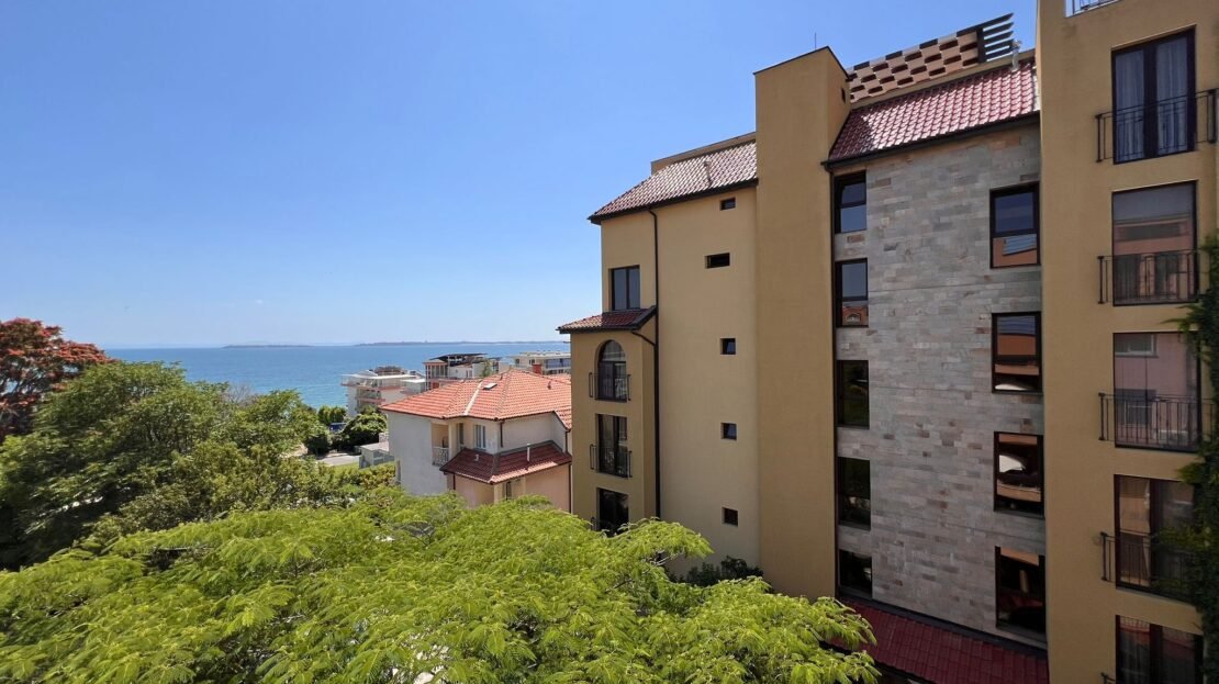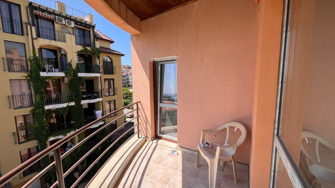 The apartment with an area of 92 sq.M. it is located on a high ground floor in a residential complex with swimming pool and parking. It is 150 meters away. from the beach of Sveti Vlas and 450 m. from Marina Dinevi yacht port. It consists of an entrance hall, a spacious living room with kitchen, two bedrooms, two bathrooms and a large terrace overlooking the courtyard and the pool. For sale fully furnished and equipped, including air conditioning in all rooms and laundry.