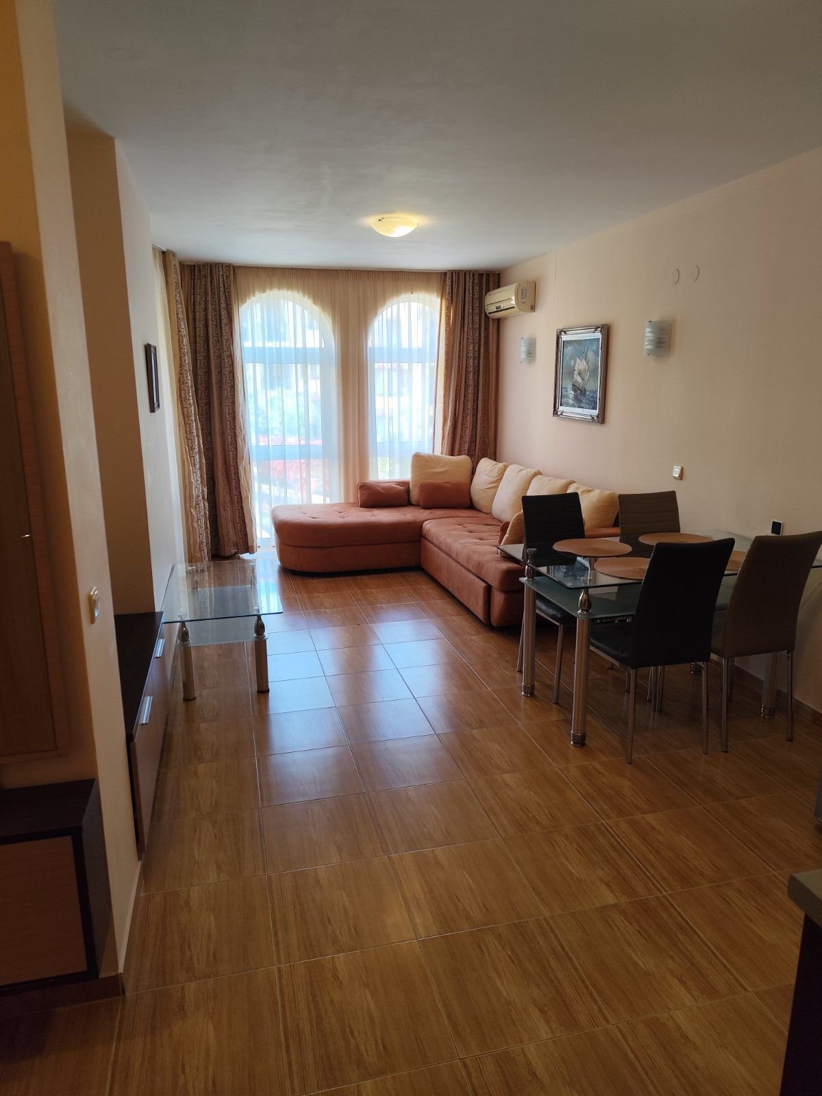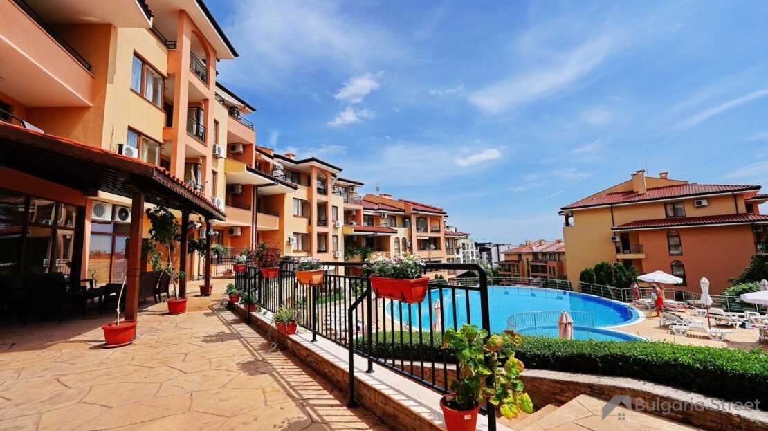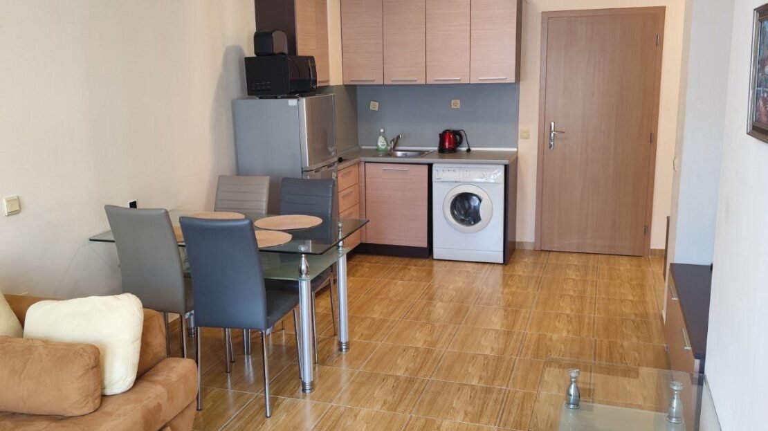A spacious 1-bedroom apartment on third floor in the Paradise Dreams complex in Sveti Vlas is offered for sale. It consists of a living room with a kitchen area and a sitting area, a bedroom, a bathroom and a terrace. The kitchen area accommodates the appliances necessary for a comfortable stay. The bathroom includes high-quality plumbing, shower. The apartment is provided not only for recreation, but also for renting.